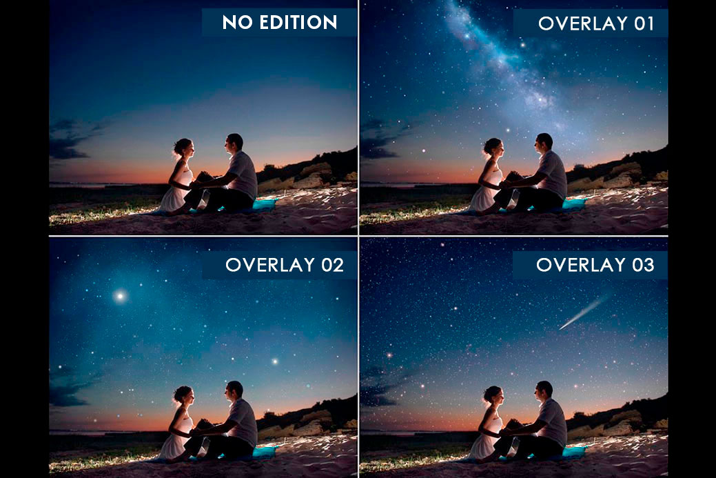 Overlays are images or textures that can be added to a photograph, lending it a particular effect: lights, lens flare, bokeh, starry sky, autumn leaves, rain, soap bubbles, and many more!
